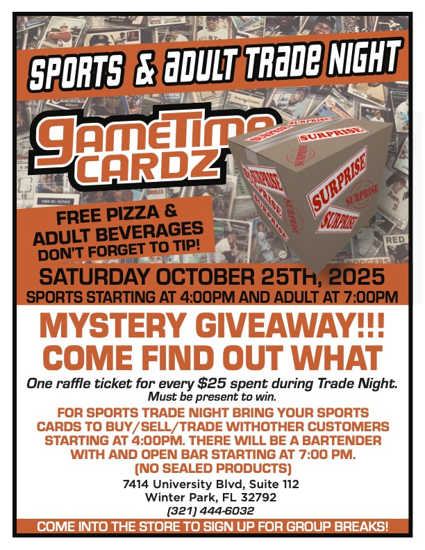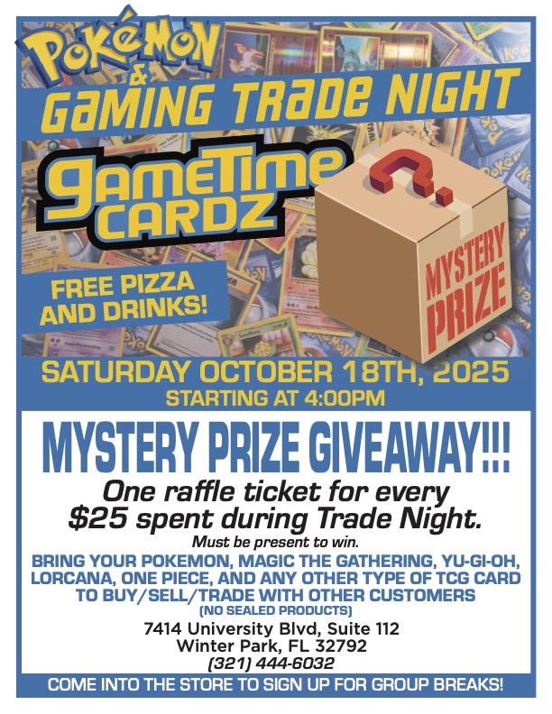 Introduction: Welcome to GameTimeCardz, your one-stop-shop for sports memorabilia, Pokémon, and other Trading Card Games (TCG) in the heart of Orlando, Florida! At GameTimeCardz, we take pride in offering enthusiasts and collectors a haven where they can find the latest releases, rare gems, and a diverse range of sports-related treasures.